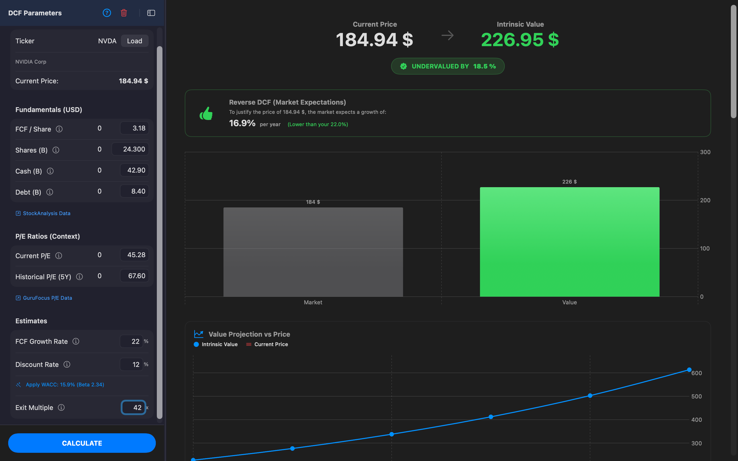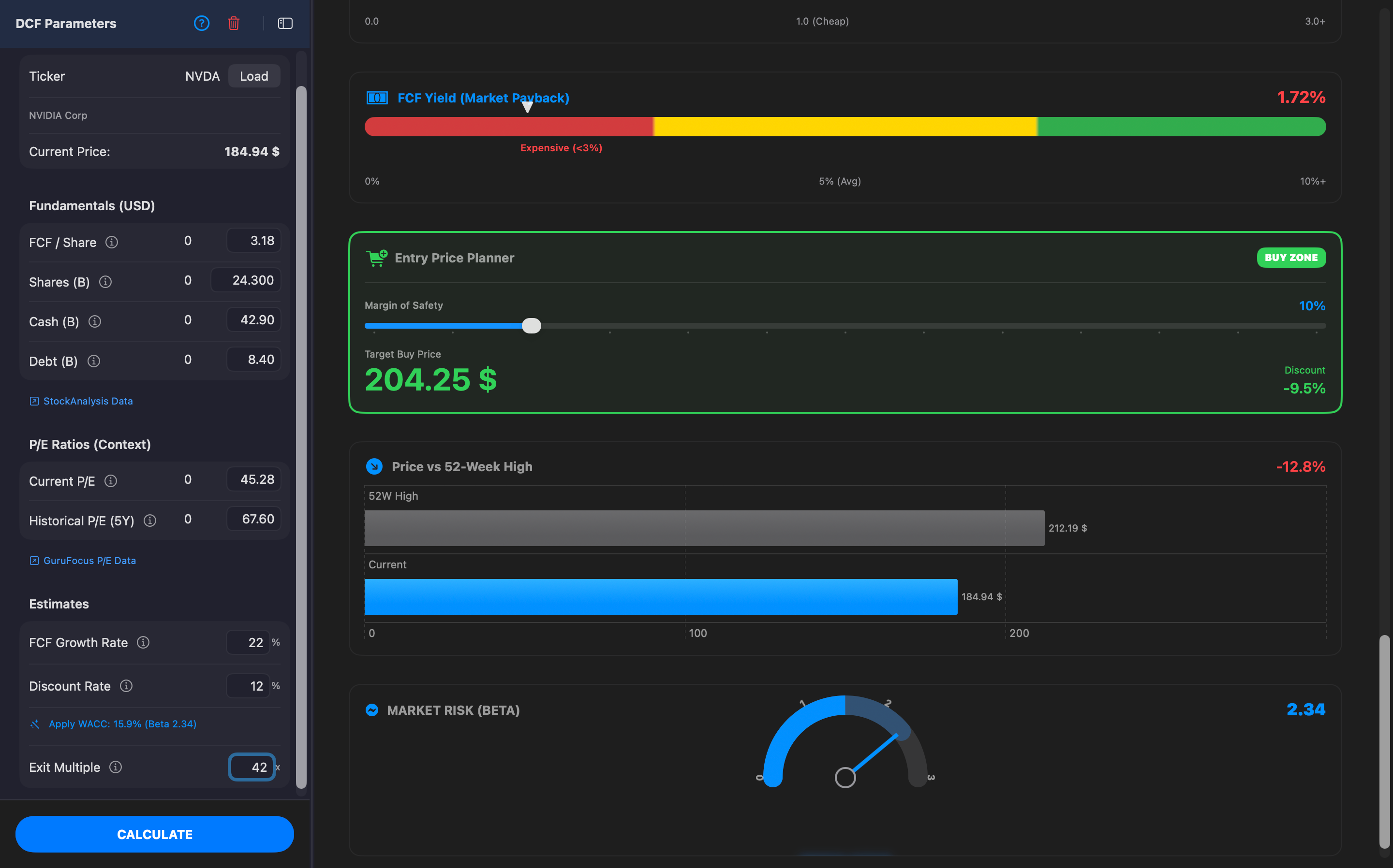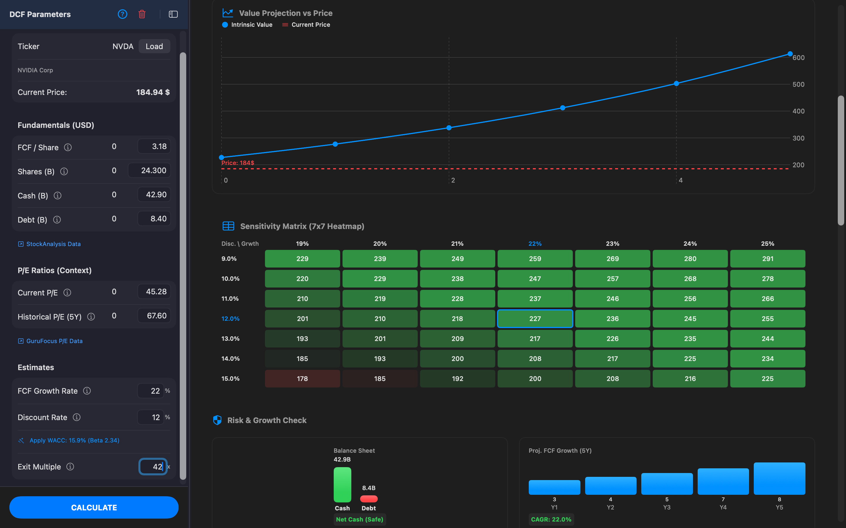 Stop guessing the discount rate. We automatically calculate WACC based on live Beta and Risk-Free rates.